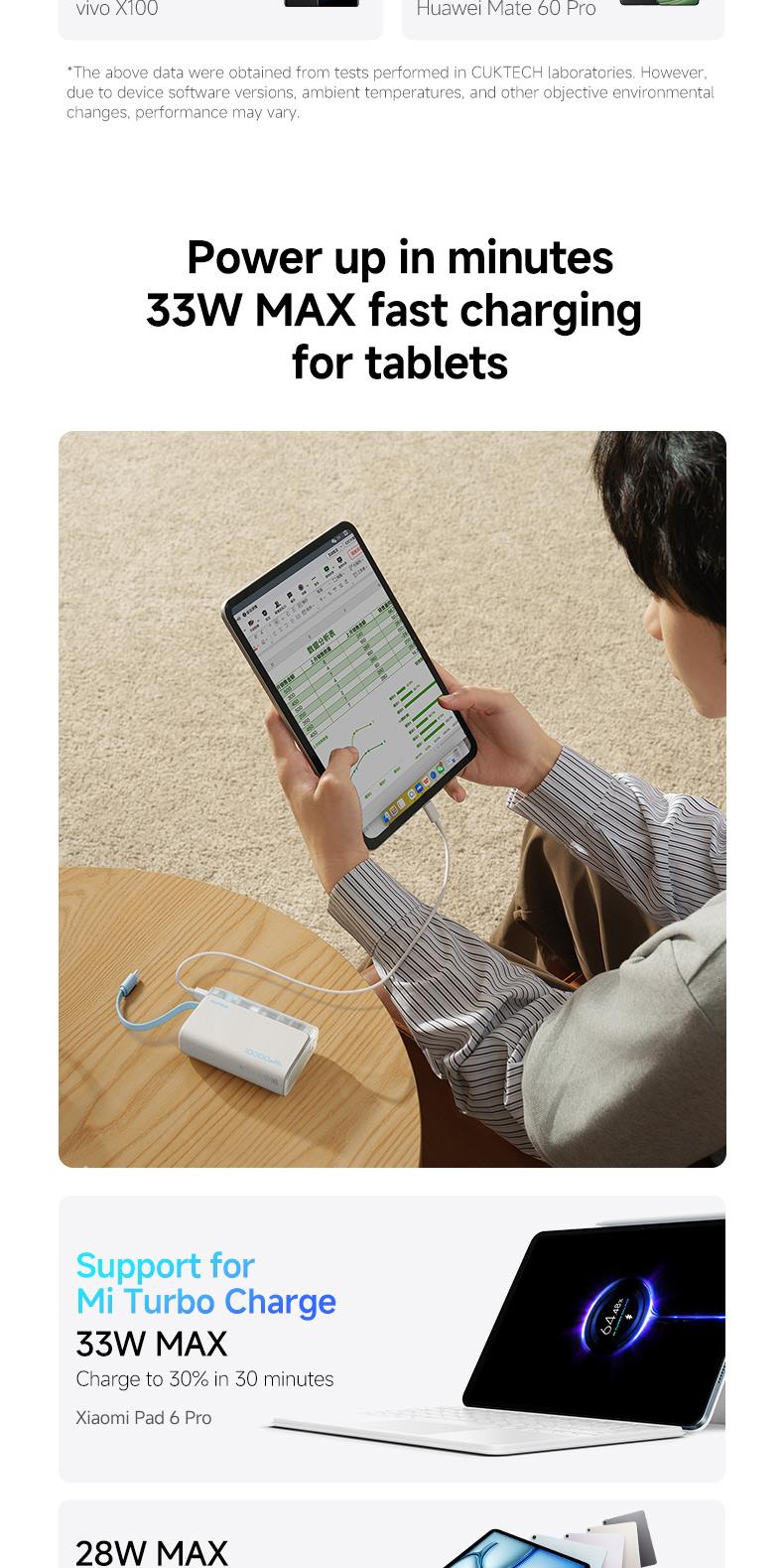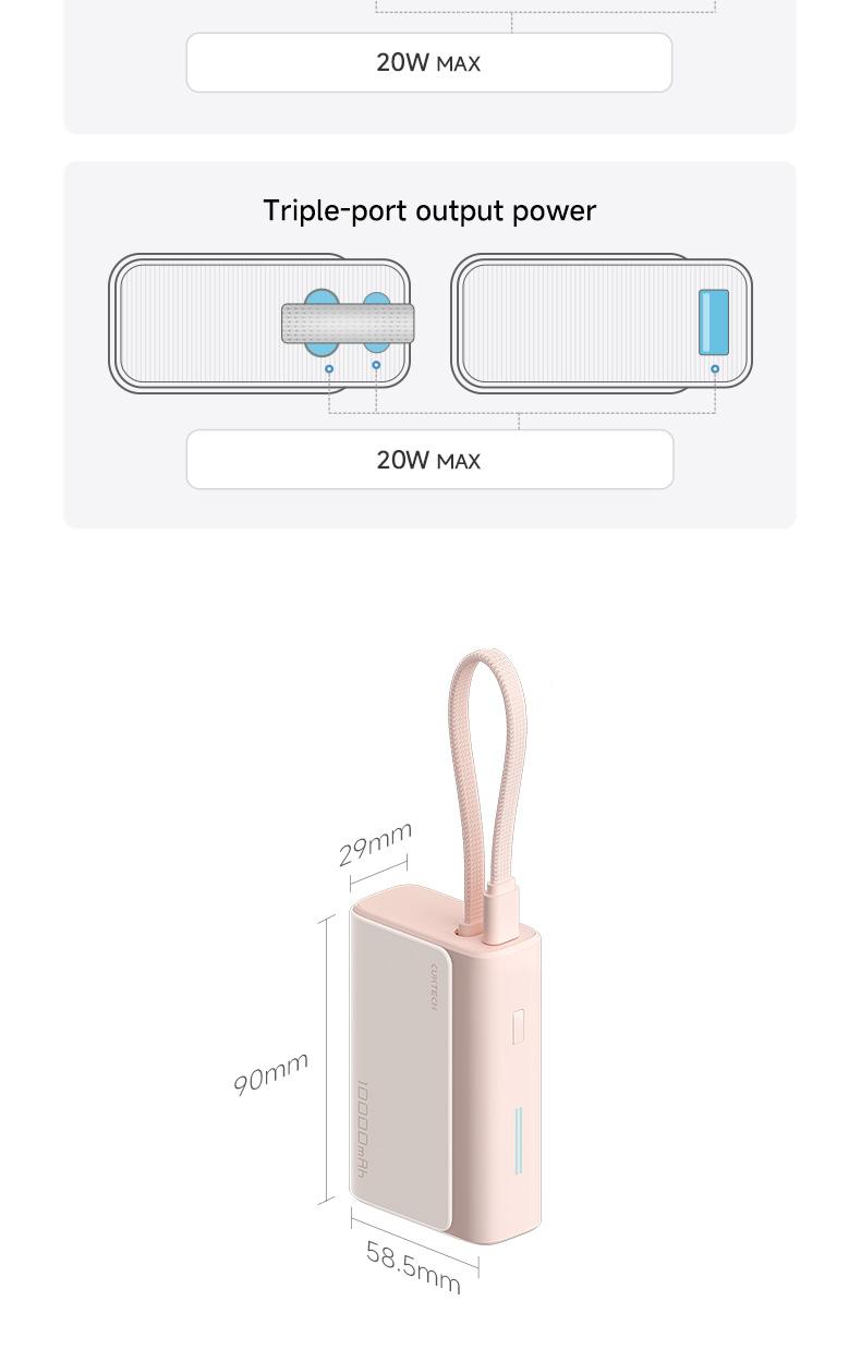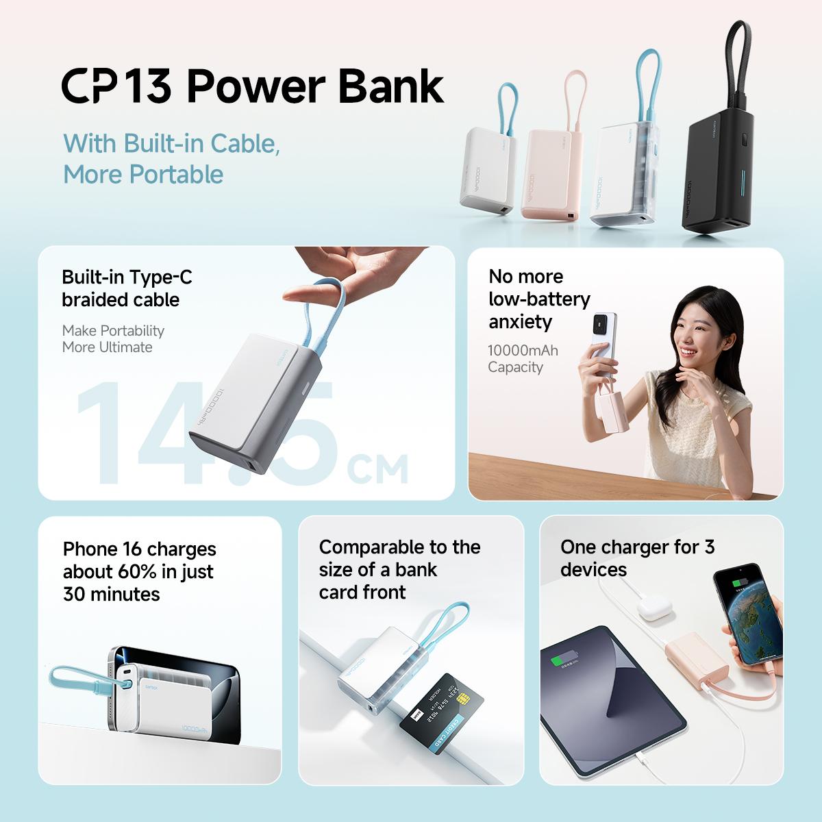CUKTECH 10000mAh Power Bank with BUILT-IN Cable 33W Fast Charge for Xiaomi
