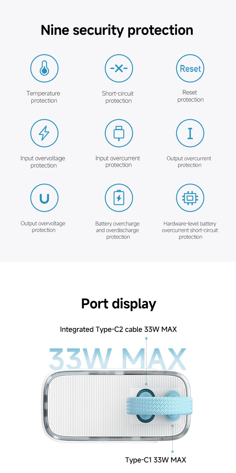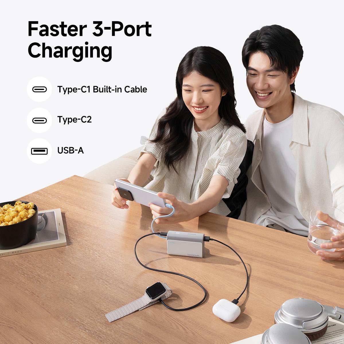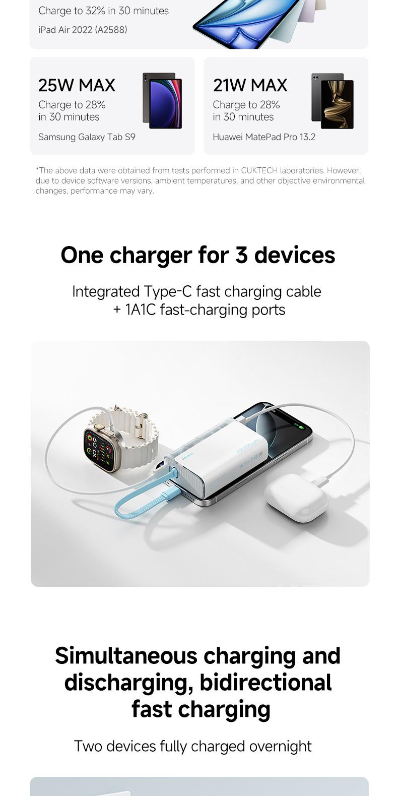 CUKTECH 10000mAh Power Bank with BUILT-IN Cable 33W Fast Charge for Xiaomi