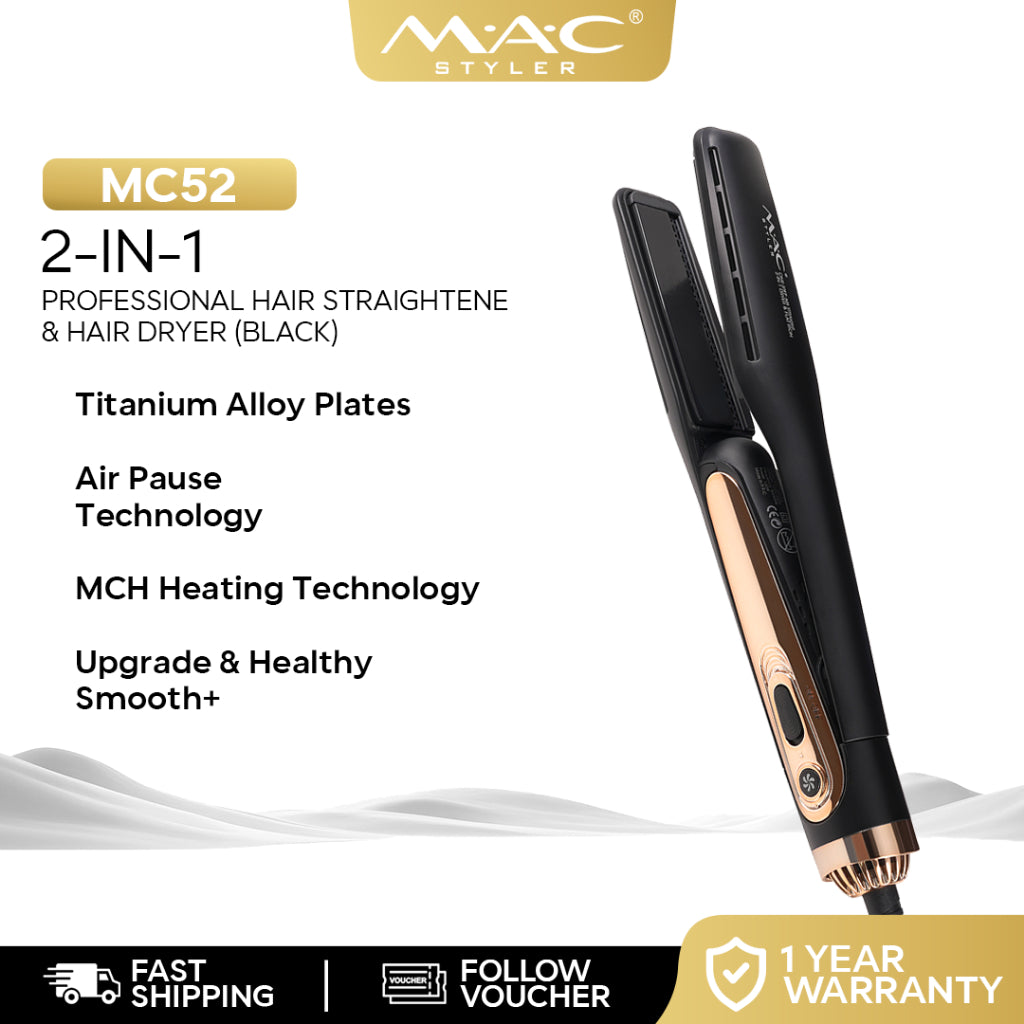 - 1 MC-52 One-Step Air Straight 2-in-1 Professional Hair Dryer & Flat Iron (Black)